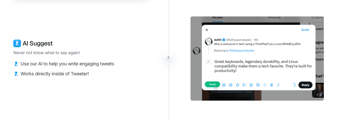 On the content side, TweetPeek helps you move faster on creation and planning, generate post ideas, draft variations, and build a queue so youâre not stuck staring at a blank composer. You can create, preview, and schedule posts so you keep a steady cadence even on busy weeks.