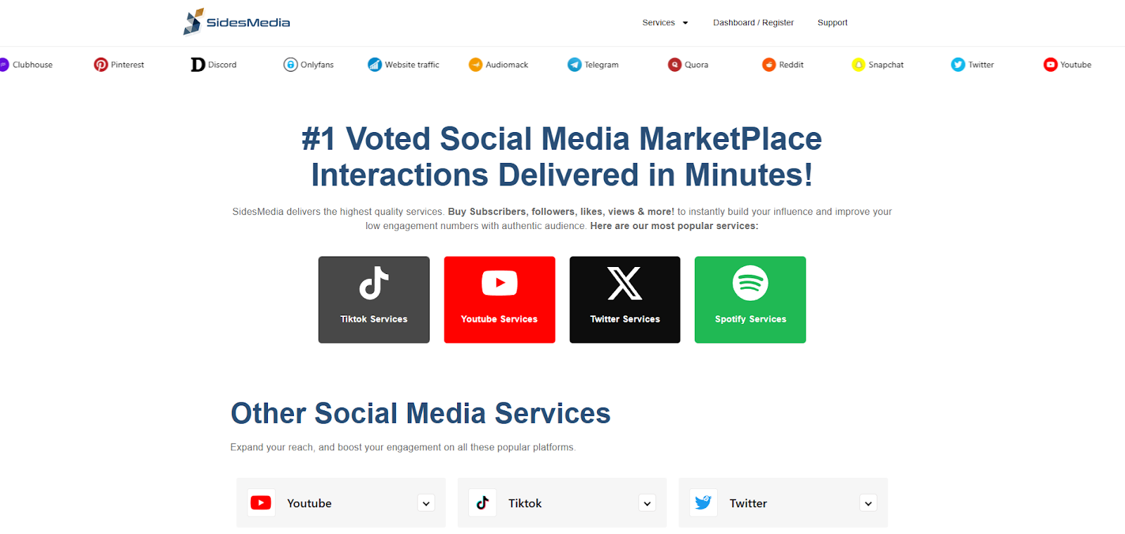 SidesMedia is commonly used for multi-platform social proof boosts, including X. If you manage multiple channels and want one vendor for several networks, this is often the appeal.